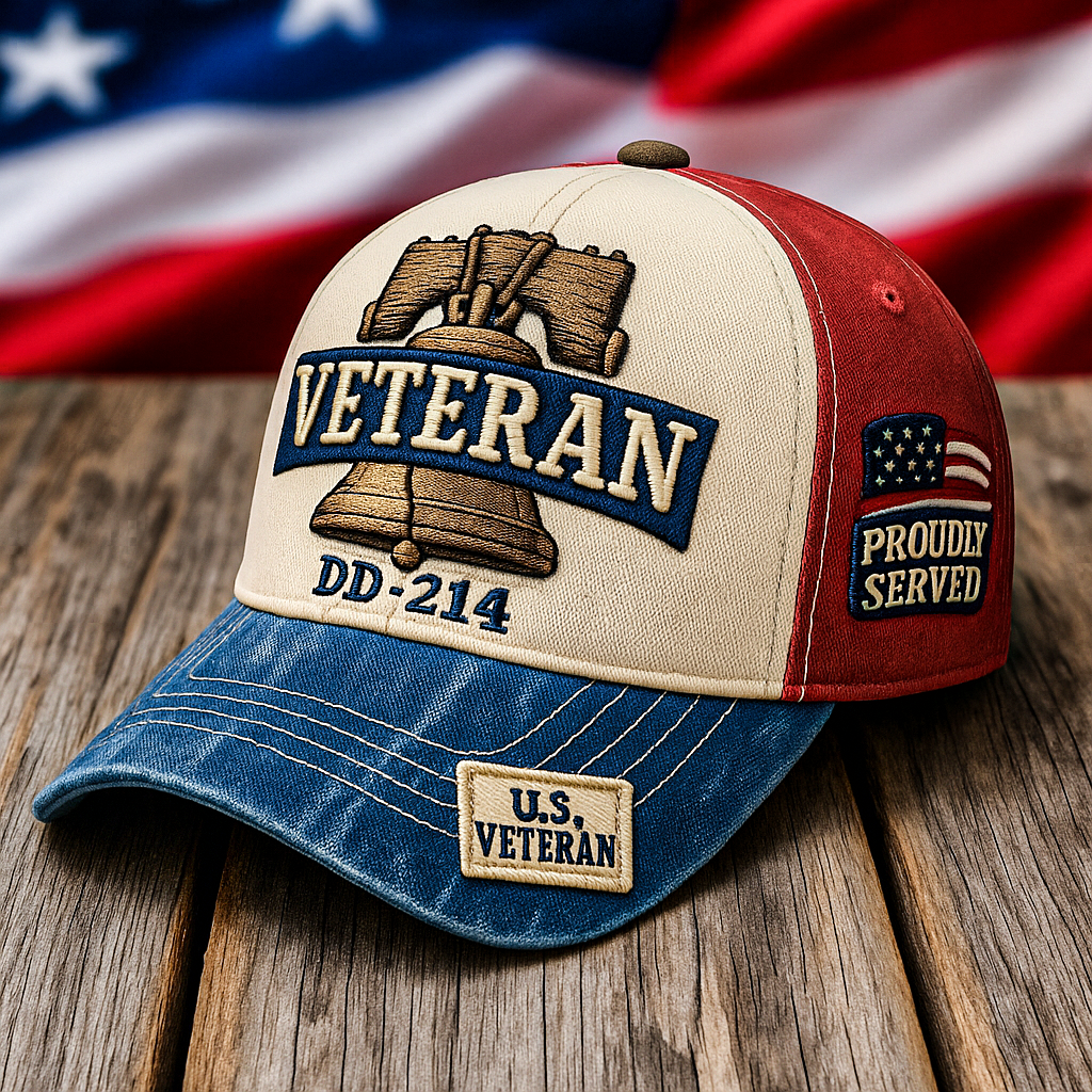 The 'Liberty Veteran Cap' is a design that pays the highest respect to all veterans who have bravely served our nation. The cap features classic red, white, and blue colors🇺🇸, as striking and proud as the American flag itself. The centrally high-relief embroidered Liberty Bell, a timeless symbol of American independence, is intimately linked with the 'VETERAN' lettering, jointly proclaiming an eternal tribute to freedom, courage, and sacrifice🌟. Wearing this cap means carrying a glorious history and embodying an enduring military spirit.