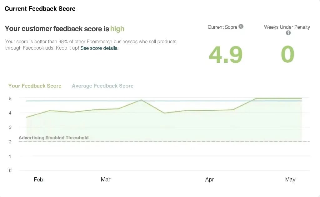 Our Facebook Official Customer Feedback Score Has Reached 4.9 out of 5. The score is better than 98% of other Ecommerce businesses who sell products through Facebook ads. We take very seriously our product quality and customer service.