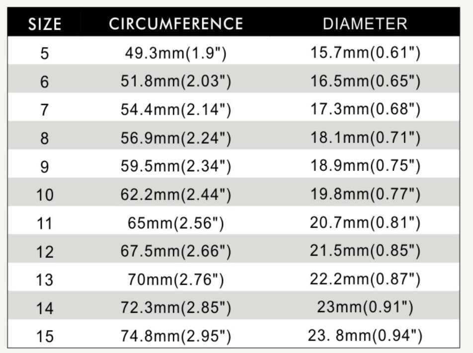 - US Size: 5, 6, 7, 8, 9, 10, 11, 12, 13, 14, 15