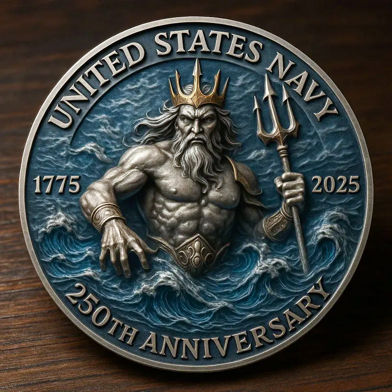 ⚓️ Salute 250 years of U.S. Navy legacy! This Neptune & Trident coin marks 1775 - 2025 naval history. For sailors, vets, or Navy pride - holders.